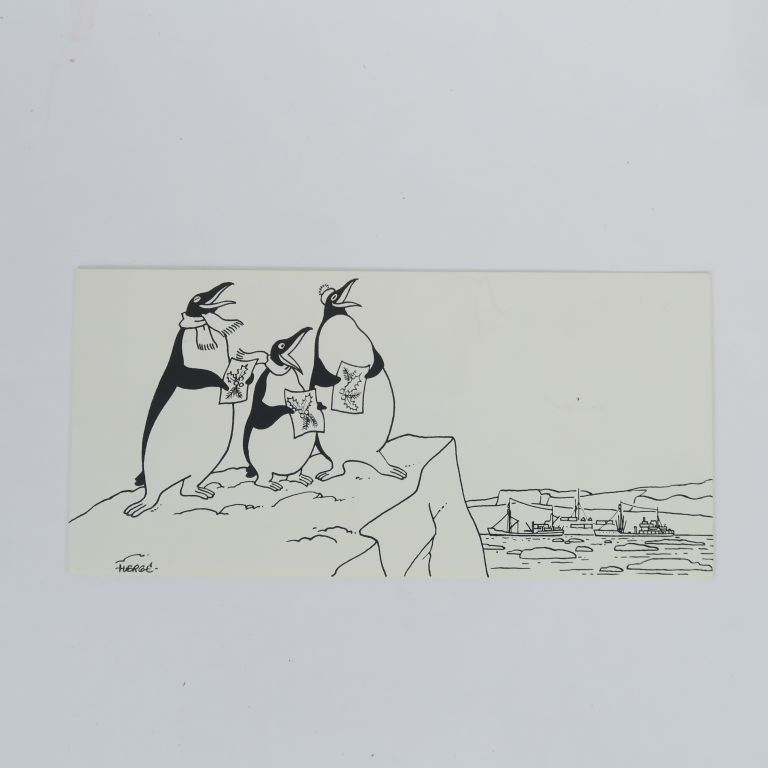 Carte de voeux de l’expédition Antarctique 1957-58 (dessinée par Hergé...
