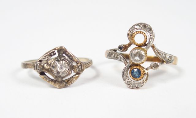 2 bagues Napoléon III en or jaune ou or blanc, ornées de diamants et saphir (manques). Poids tel: 5,1gr