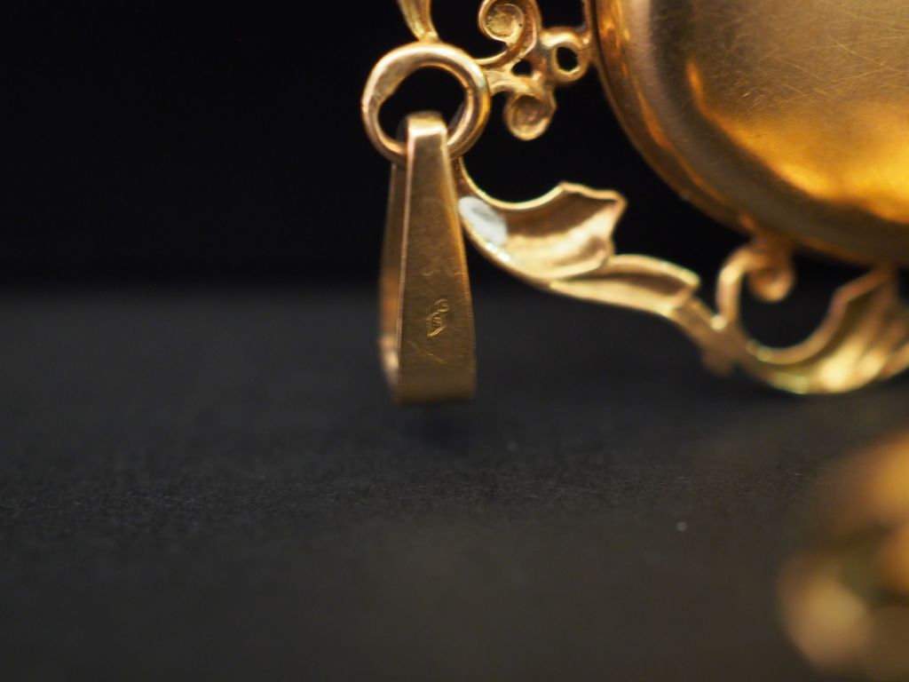 2 différents pendentifs Napoléon III en or onyx et pierre de couleur. Poids tel : 17,39 g
