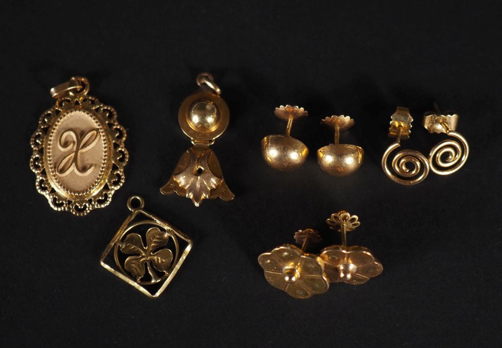 3 pendentifs et 3 paires de perce oreilles en or 750 Poids : 6,80 g