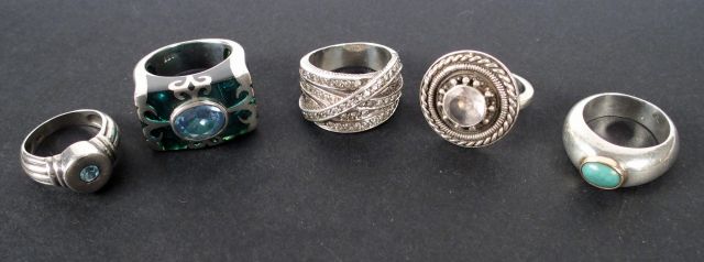 5 bagues monture argent et pierres de couleur. Poids tel: 45,1gr