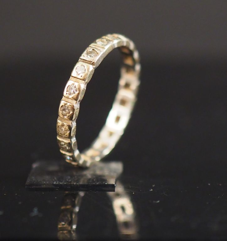 Alliance américaine en or blanc et petits diamants. TDD. 52 Poids tel. 1,88 g