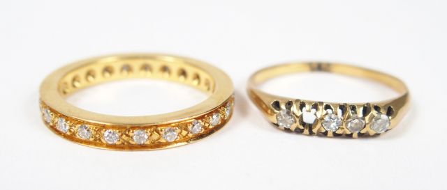 Alliance américaine en or jaune et diamants. On y joint une bague or jaune et 4 diamants (un manque). Poids tel: 6,5gr