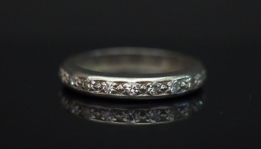 Alliance américaine en platine, sertie de petits diamants. TDD. 50 Poids tel. 2,48 g