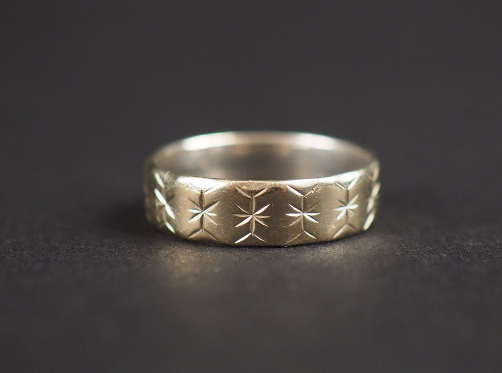 Alliance en or blanc, à décor d'étoiles. TDD. 51 Poids. 3,24 g