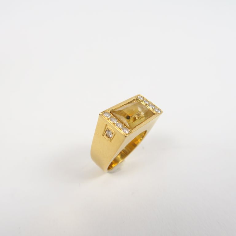 Bague 1940 en or jaune, ornée d'une pierre de couleur et de petits brillants. Poids tel. 12 g