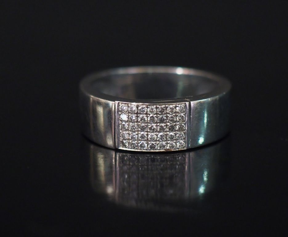 Bague bandeau en or blanc, sertie en son centre d'un pavage de petits diamants. TDD. 63 Poids tel. 8,23 g