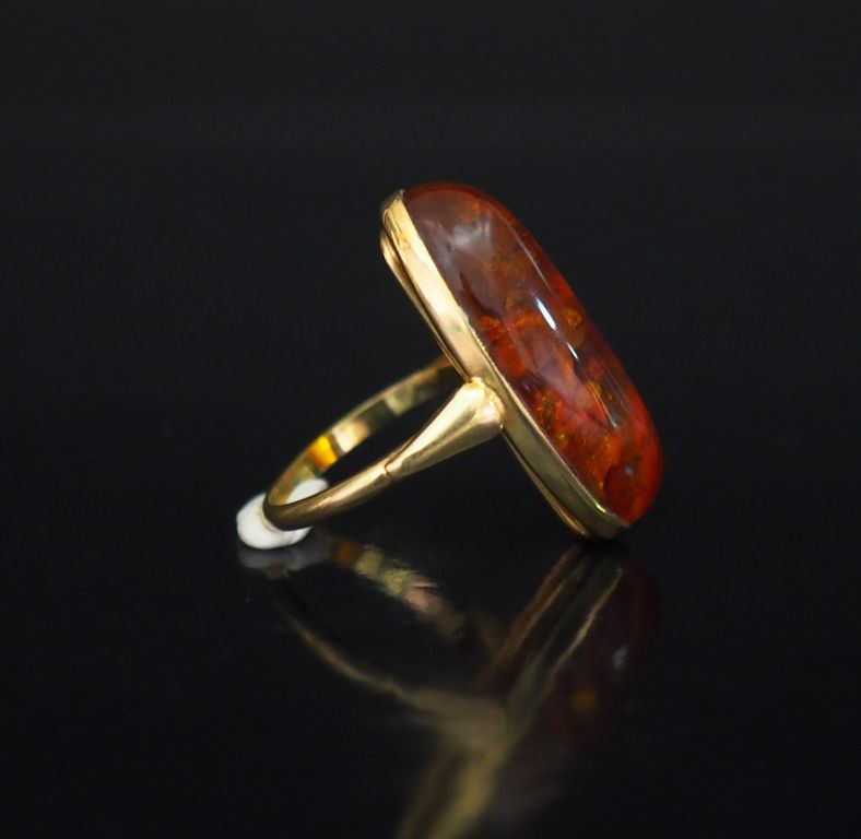 Bague de forme marquise en or jaune, sertie en son centre d'une imitation d'ambre. TDD. 52 Poids tel. 4,83 g
