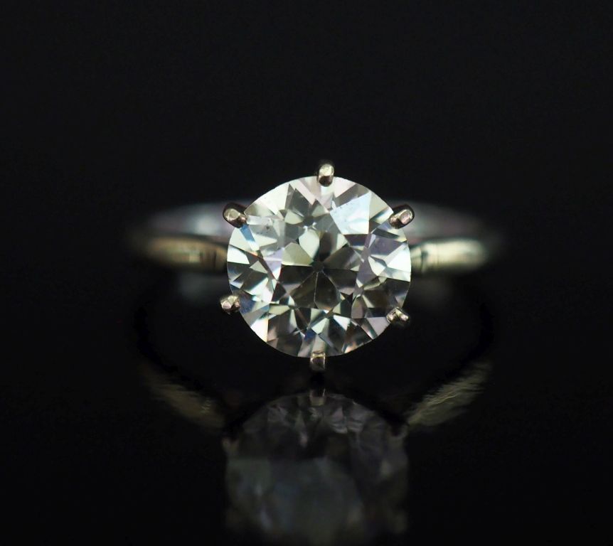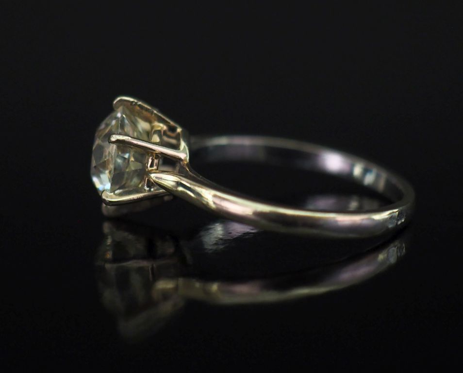Bague de forme solitaire en or blanc 750, sertie d'un diamant taille ancienne de 2,4 ct environ. Couleur présumée : L. TDD. 56 Poids tel. 3,37 g