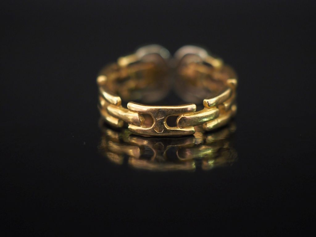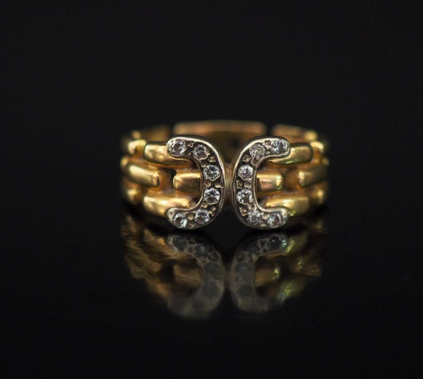 Bague deux tons d'or, à décor en son centre de deux "C" adossés et sertis de petits diamants. TDD. 56 Poids tel. 4,80 g