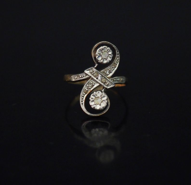 Bague dite « Toi Moi » en or jaune, sertie de petits éclats de diamants. TDD. 51 Poids tel. 3,40 g (anneau légèrement tordu)