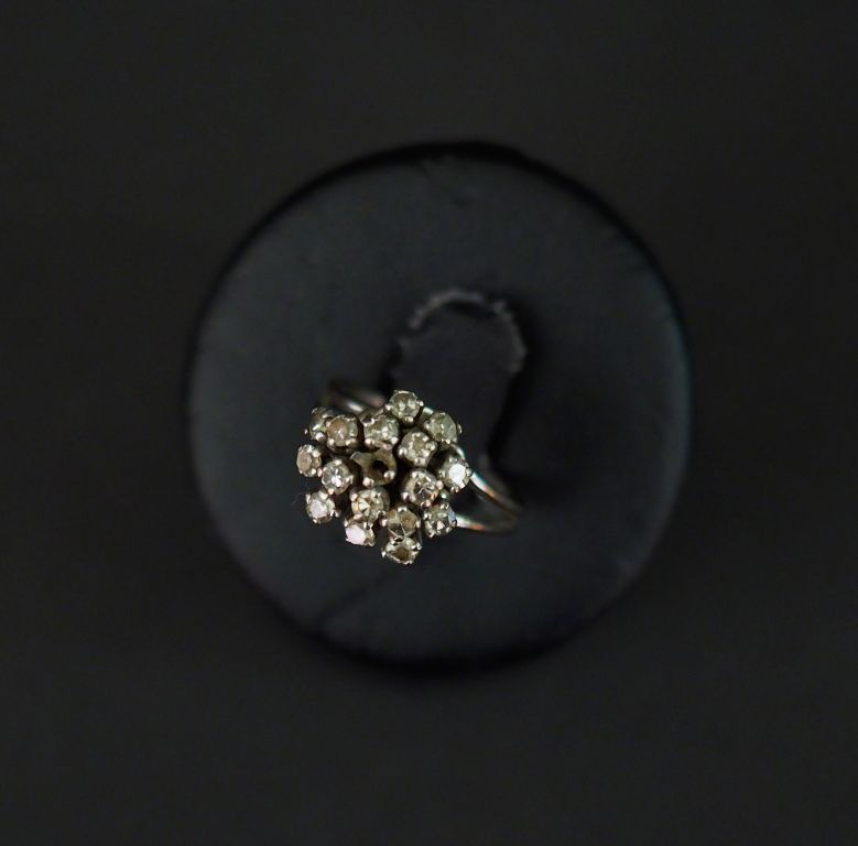 Bague dôme en or blanc, sertie de petits diamants. TDD. 49 Poids tel. 4,41 g (manque le diamant central et une tige)