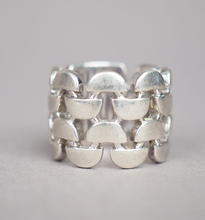 Bague en argent ajouré, à décor d'une pierre de couleur rouge. TDD. 50 Poids tel. 13,69