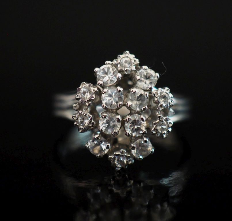 Bague en or blanc 750, sertie d'un pavage de pierres à l'imitation du diamant. TDD. 50 1/2 Poids tel. 3,53 g