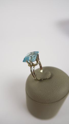 Bague en or blanc sertie d'une aigue marine. 3 g