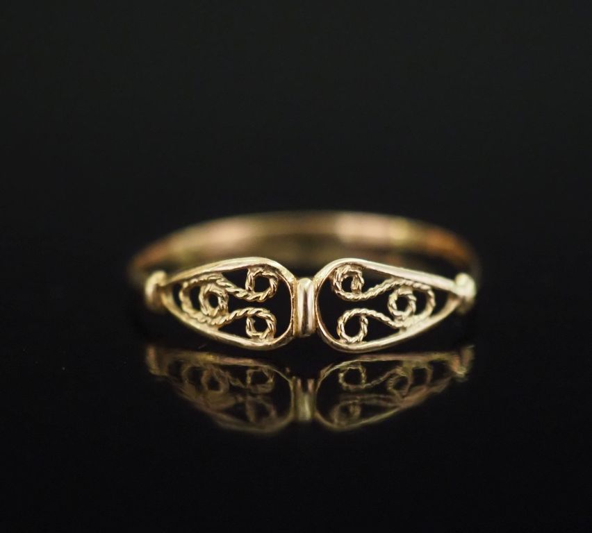 Bague en or jaune 750, à décor ajouré et filigrané. TDD. 58 Poids. 0,65 g