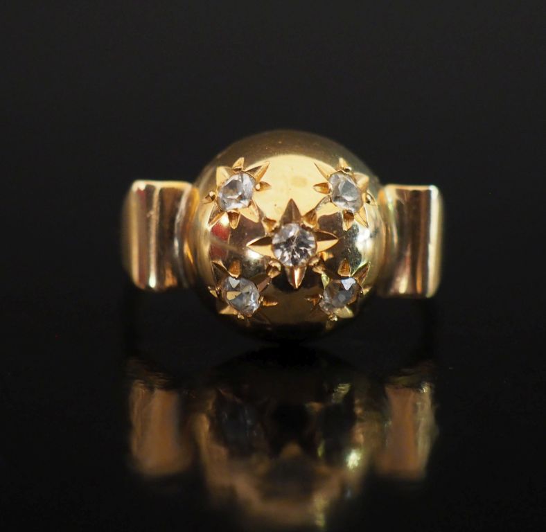 Bague en or jaune 750, à décor d'une demi sphère sertie de pierres à l'imitation du diamant. TDD. 2,77 g