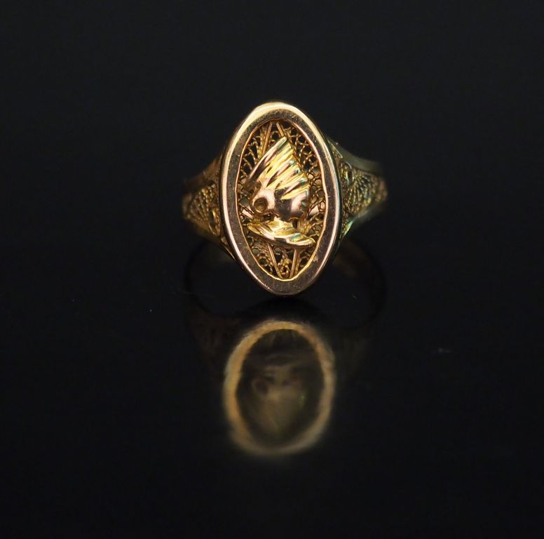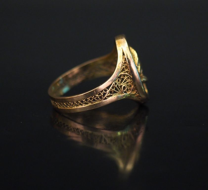 Bague en or jaune, à décor de filigranes. TDD. 54 Poids. 4,45 g