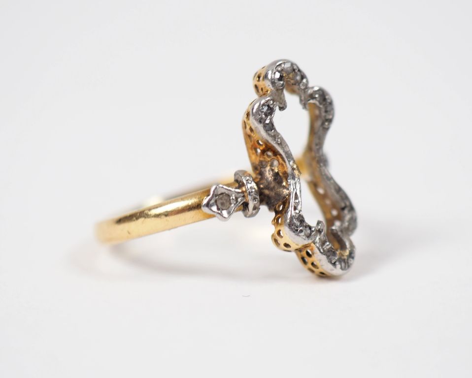 Bague en or jaune et éclats de diamants. TDD. 52 Poids. 2,29 g (manque, accident et restauration)