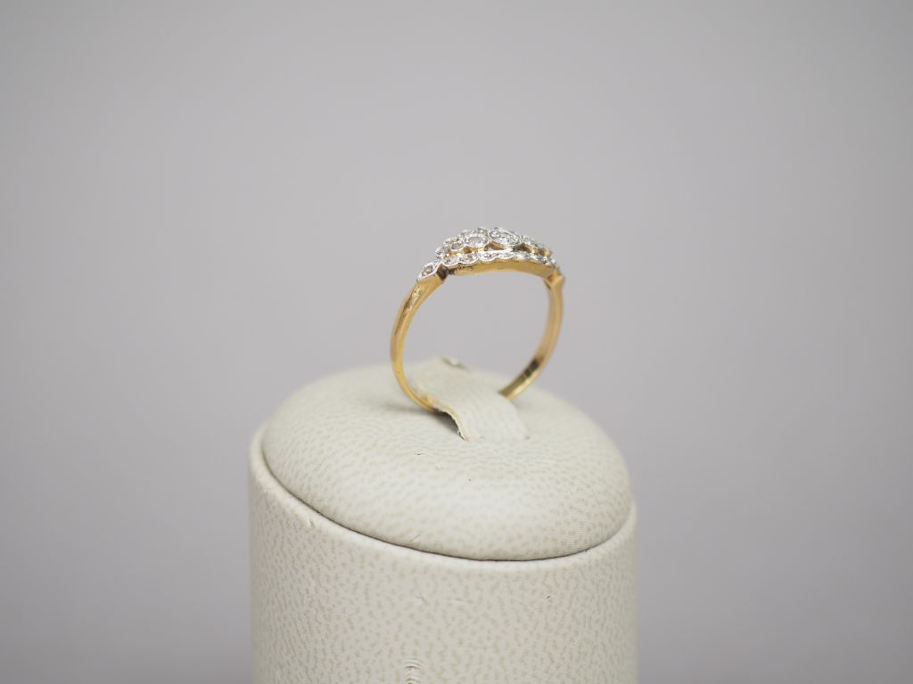 Bague en or jaune, ornée de petits diamants et d'éclats de diamants. TDD. 55 Poids tel. 1,98 g (petits manques)