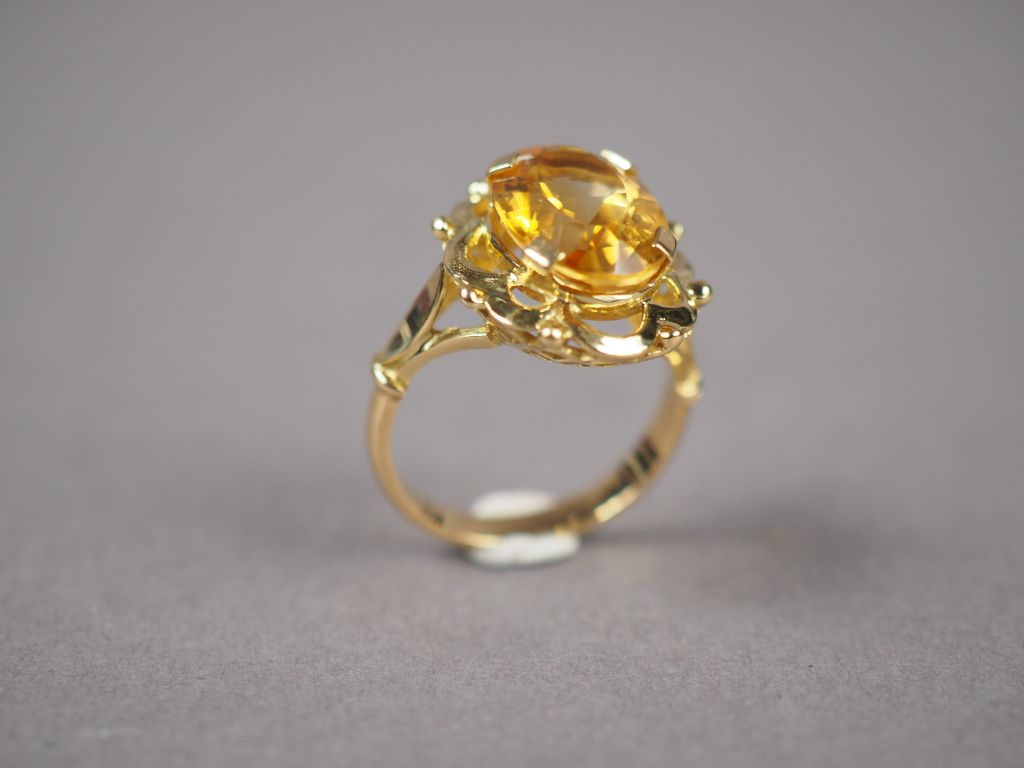 Lot de Bague en or jaune, ornée d'une citrine. TDD. 55 Poids tel. 6,60 g au prix de 200 à 300 € en vente aux enchères par l'hôtel des ventes Primardeco
