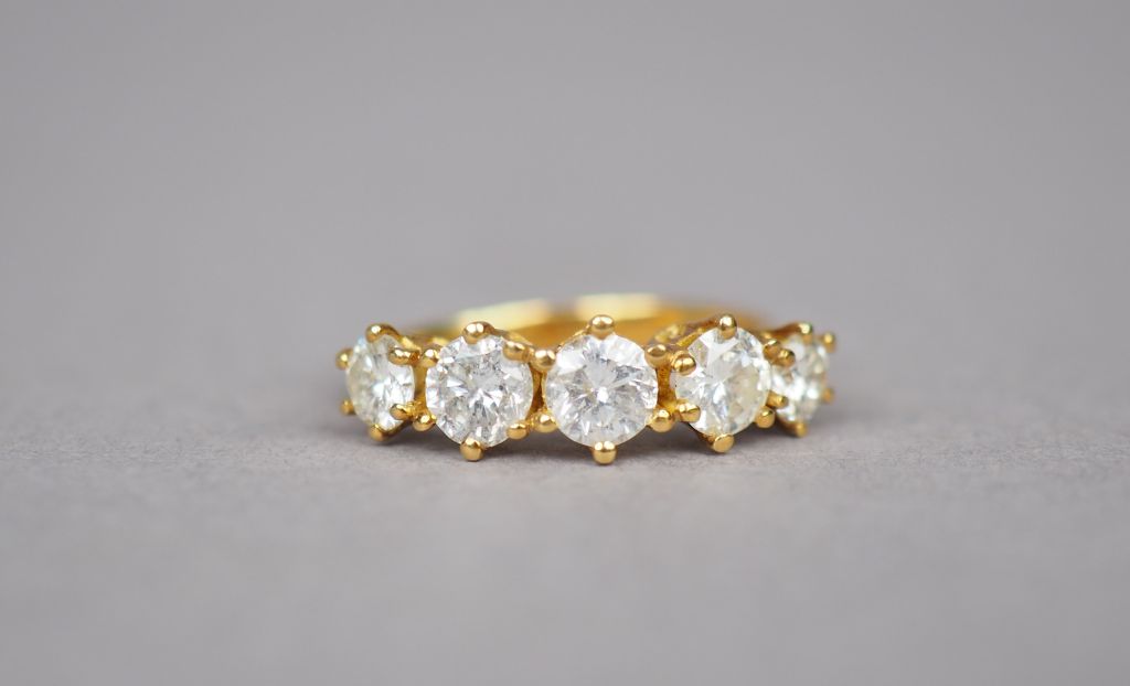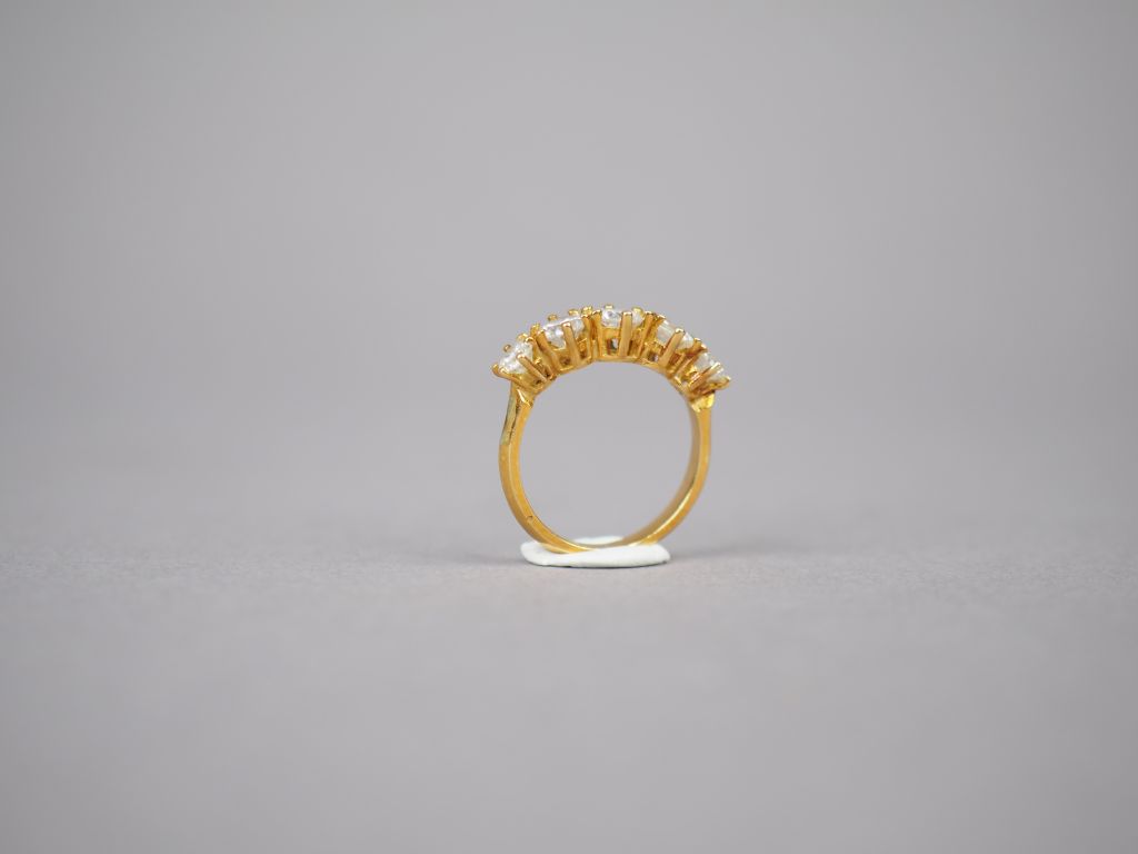 Bague en or jaune, ornée d'une ligne de cinq diamants. TDD. 50 Poids tel. 3,23 g