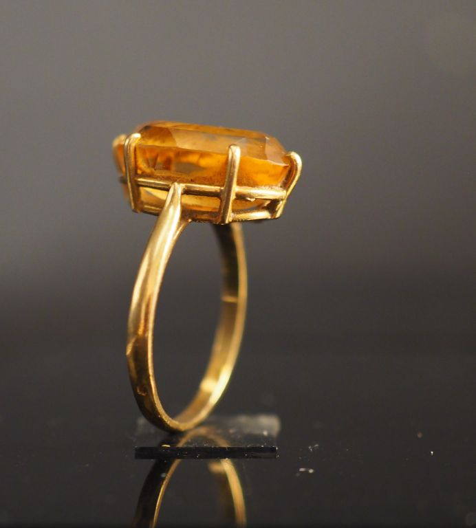 Bague en or jaune, sertie d'un quartz. TDD. 59 Poids tel. 4,70 g