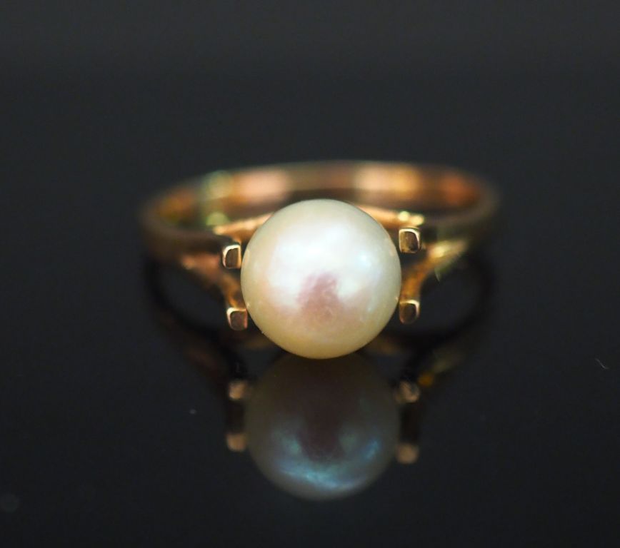 Bague en or jaune, sertie d’une perle. TDD. 52 Poids tel. 2,28 g