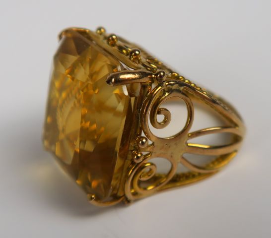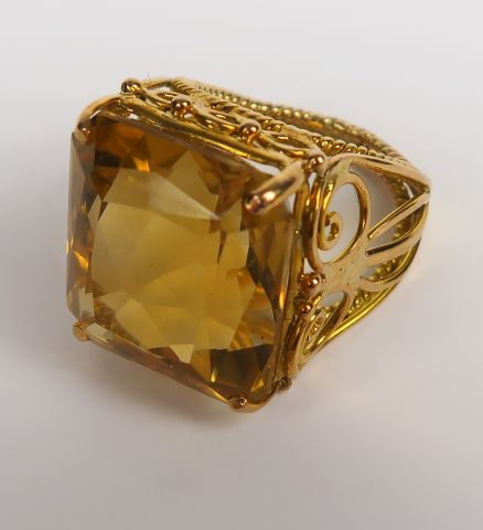 Bague en or ornée d'une citrine. Belle monture ajourée. Poids tel : 13,34 g