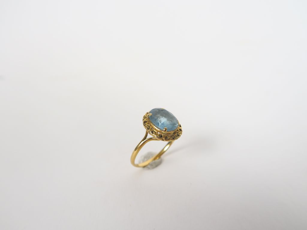 Bague en or ornée d'une pierre bleue. Poids tel. 3 gr