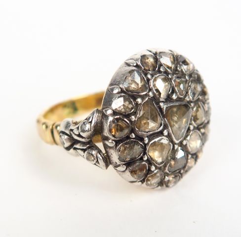 Bague espagnole en or ornée d'un pavage de roses. Poids tel : 11,26 g AC