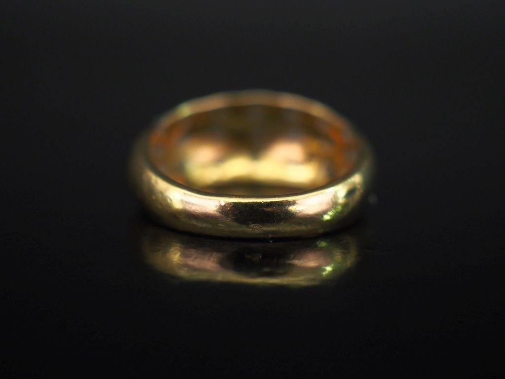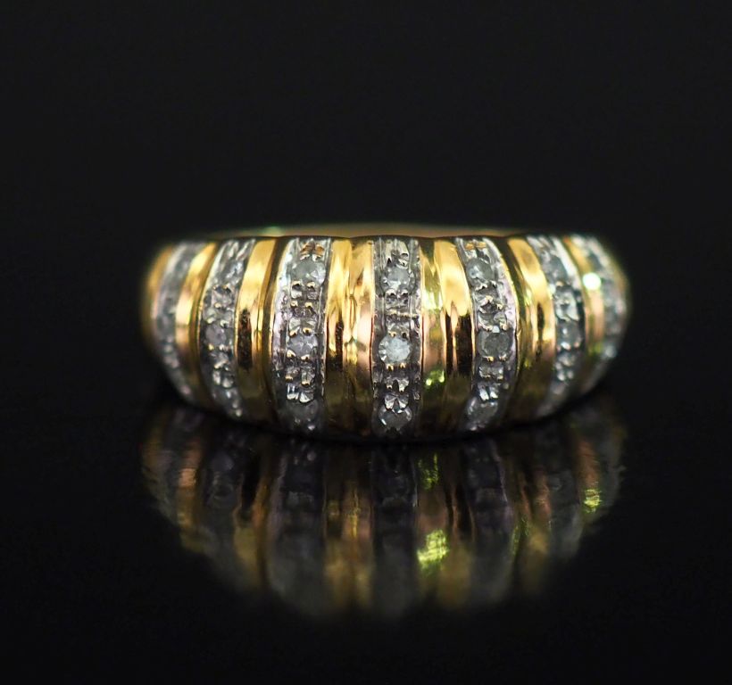 Bague jonc en or jaune 750, à décor de godrons et sertie de sept lignes de trois petits diamants. TDD. 55 Poids tel. 5,14 g