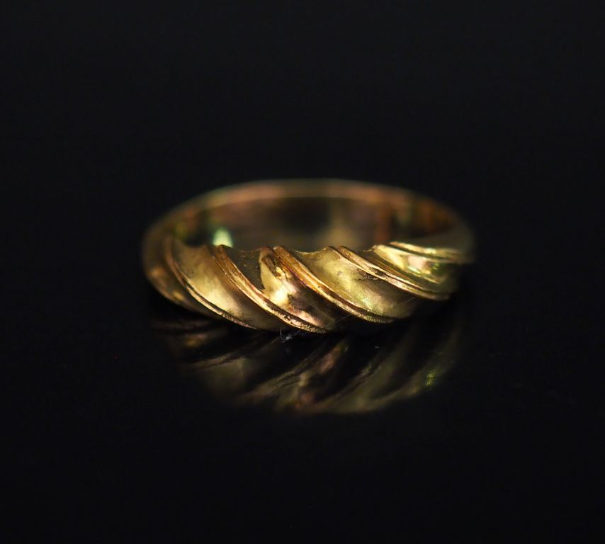 Lot de Bague jonc en or jaune, à décor de côtes torses. TDD. 53 Poids. 2,34 g au prix de 70 à 80 € en vente aux enchères par l'hôtel des ventes Primardeco