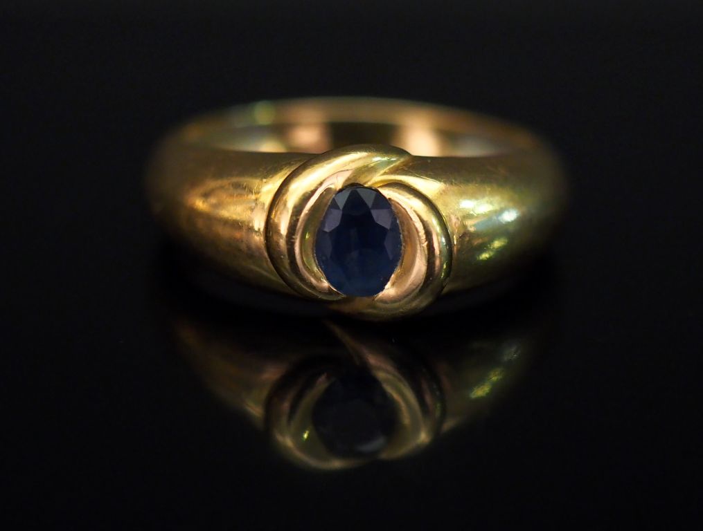 Bague jonc en or jaune, sertie d’une pierre bleue. TDD. 54 Poids tel. 3,69 g