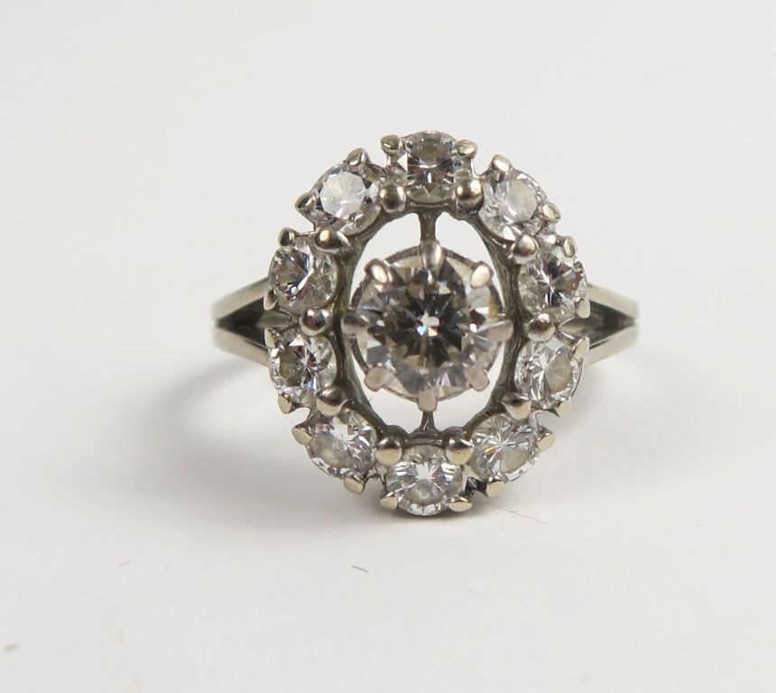 Bague marguerite en or blanc, ornée d'un brillant central dans un entourage de brillants