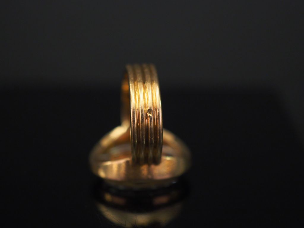 Bague Napoléon III en or jaune et verre, à décor de monogramme. Anneau cannelé. TDD. 47 Poids. 7,35 g