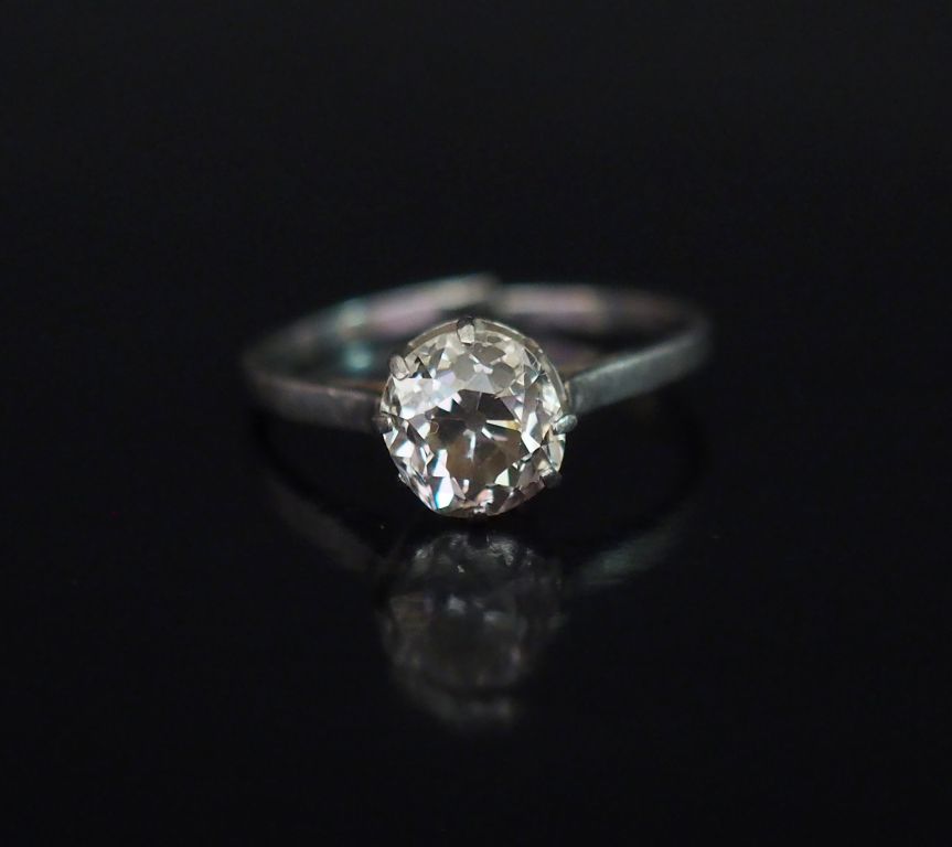 Bague solitaire en or blanc, sertie en son centre d'un diamant taille ancienne de 1 ct environ. TDD. 52 Poids tel. 2,40 g (anneau coupé)
