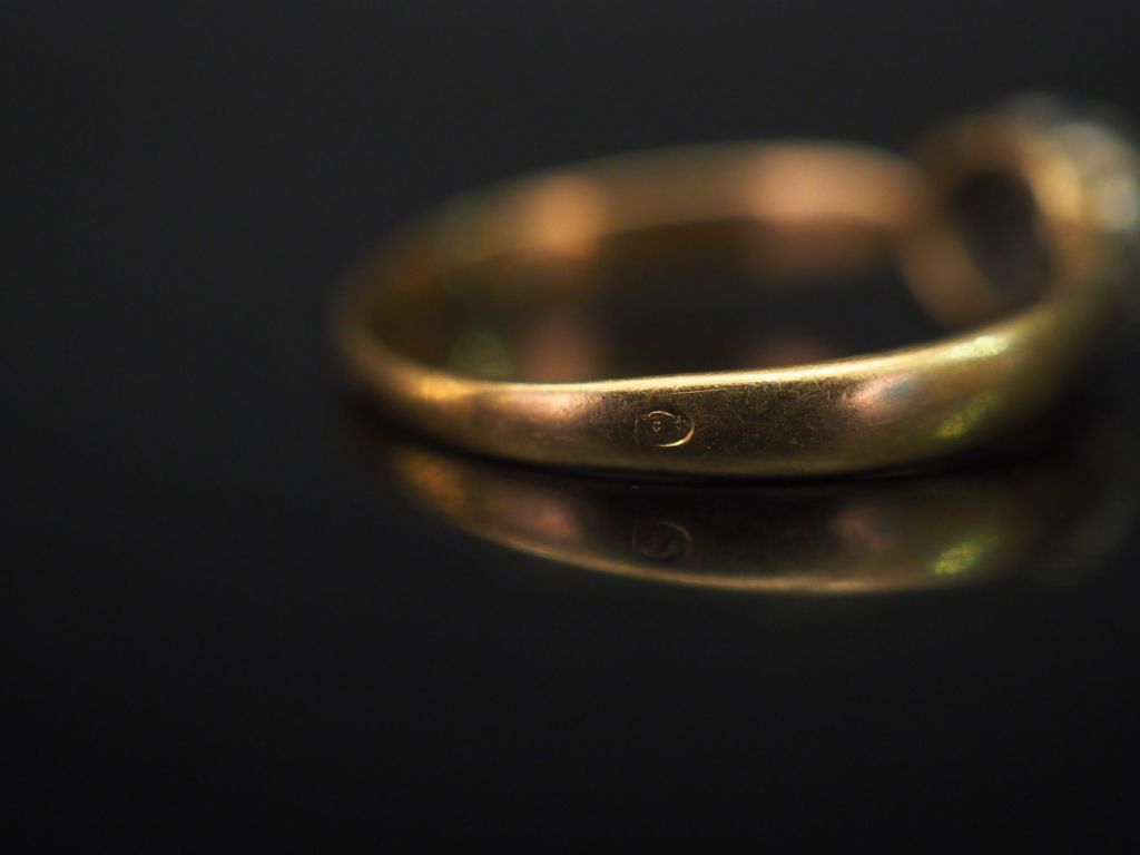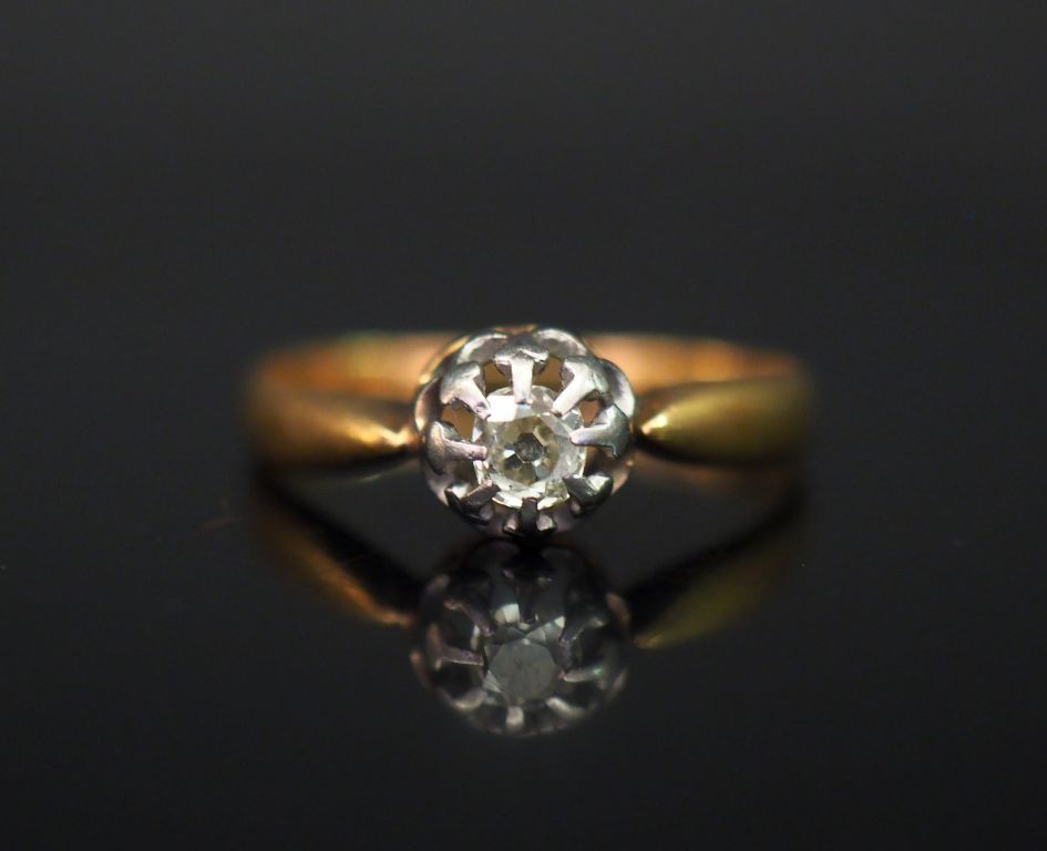 Bague solitaire en or jaune, sertie en son centre d'un petit diamant taille ancienne de 0,10 ct environ. TDD. 52 Poids tel. 2 g