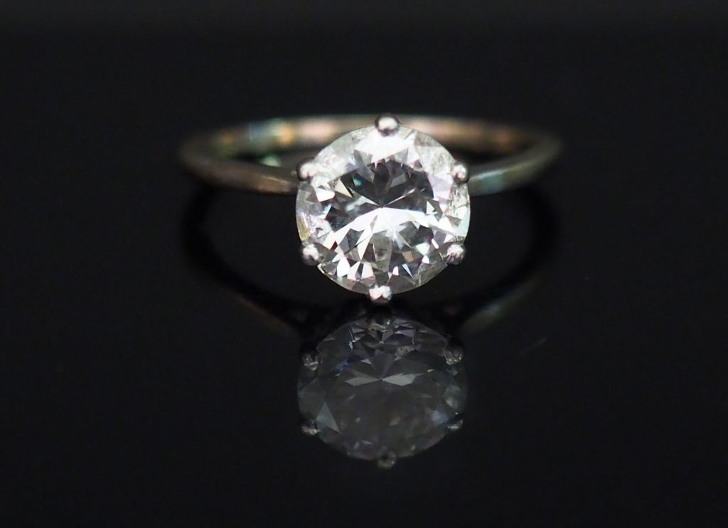 Bague solitaire en platine et or blanc, sertie d’un diamant demi-taille de 1,8 ct environ. TDD. 53 Poids tel. 2,99 g