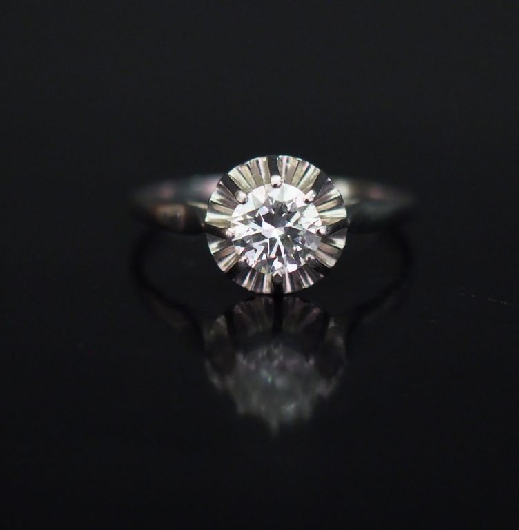 Bague solitaire en platine, sertie en son centre d'un diamant de 0,6 ct environ. TDD. 57 1/2 Poids tel. 3,22 g
