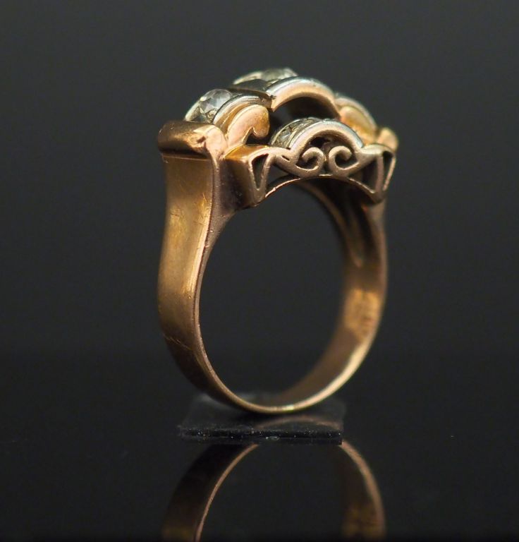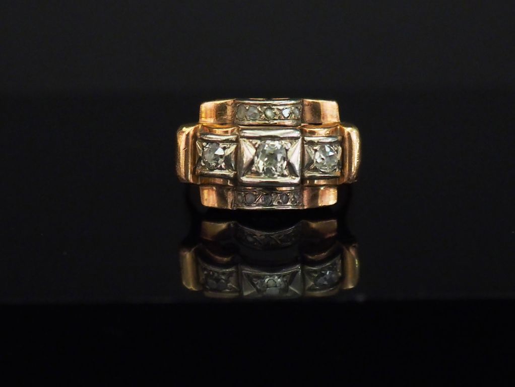 Bague tank en or jaune, sertie de diamants taillés en rose. TDD. 54 Poids tel. 6,95 g