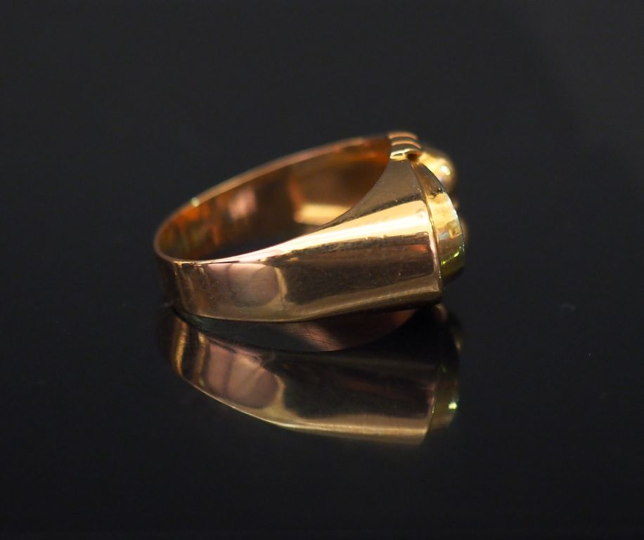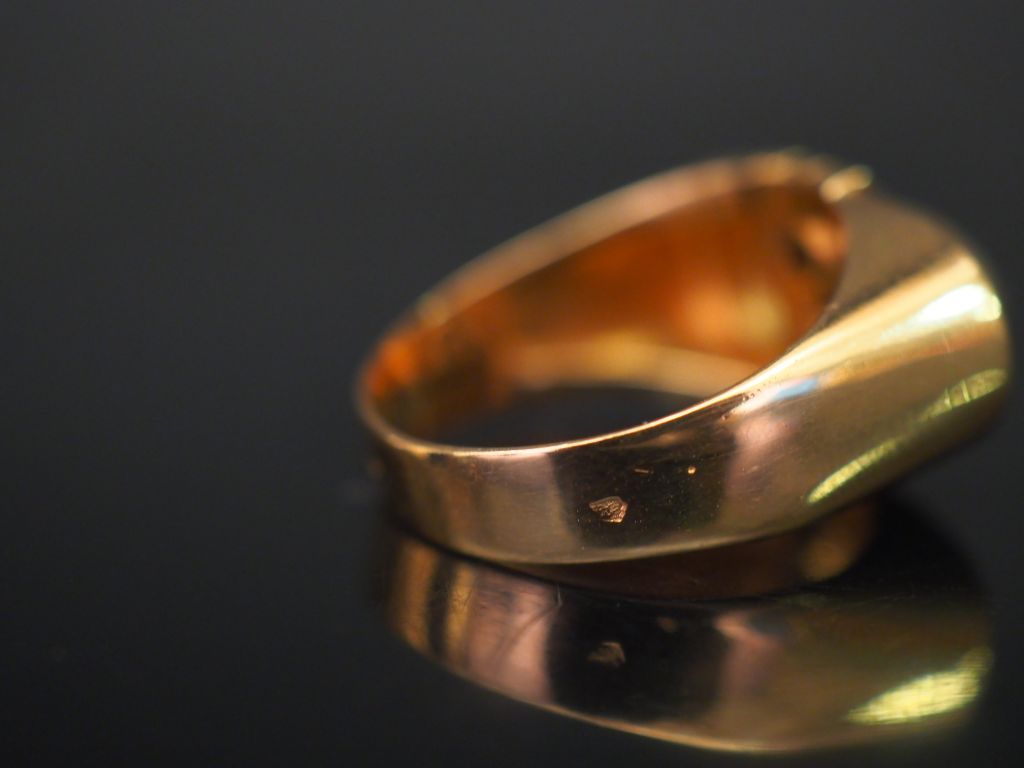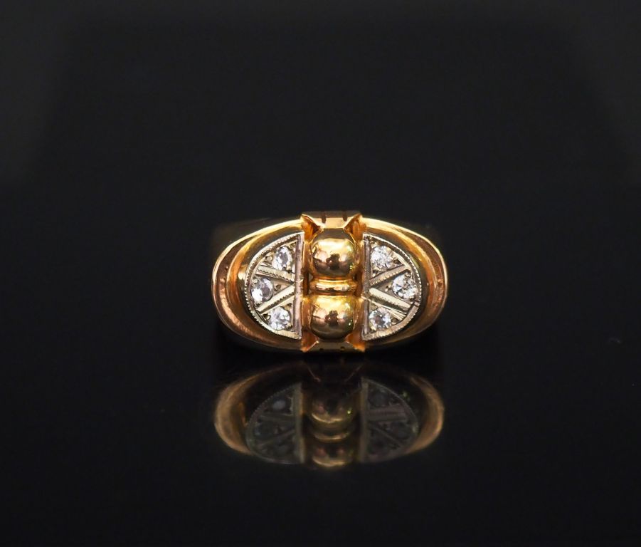 Bague tank en or jaune, sertie de six pierres à l'imitation du diamant. TDD. 54 Poids tel. 3,77 g