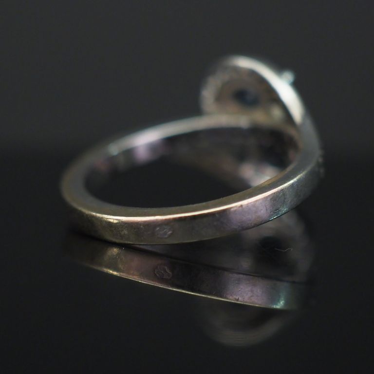 Bague "Toi Moi" en or blanc sertie de deux saphirs. Monture mouvementée, sertie de petits diamants et pierres de couleur. TDD. 54 Poids tel. 5,15 g