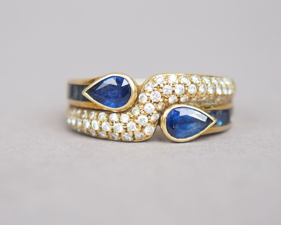 Bague "Toi Moi" en or jaune, ornée de saphirs, saphirs calibrés et petits diamants. TDD. 58 Poids tel. 8,65 g