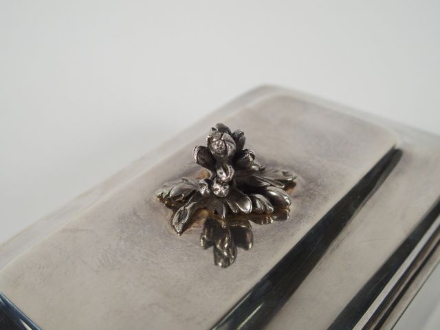 Beurrier en argent, poinçon Minerve, prise en forme de fleur. M.O : EP Poids. : 518 gr
