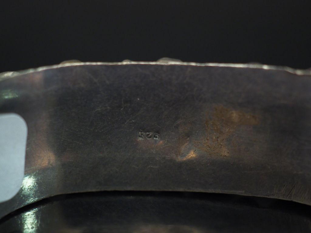 Bracelet Afrique du Nord en argent 925, serti de corail (?) et pierres dures en cabochon. 5 x 6,2 cm Poids tel. 67 g