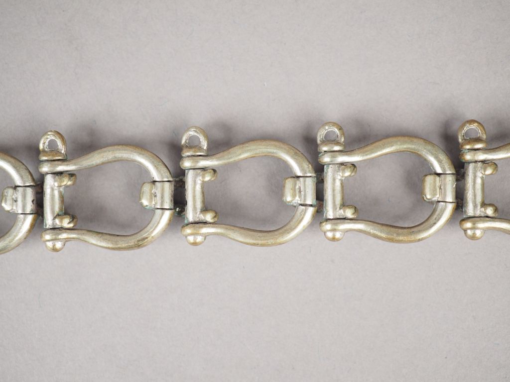 Bracelet articulé en argent, maillons en forme d'étriers. Long. 19,5 cm Poids. 50,86 g
