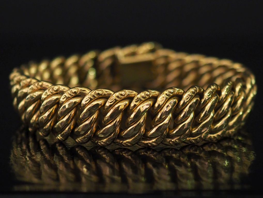 Lot de Bracelet articulé en or jaune, maille américaine. Long. 19 cm Larg. 1 au prix de 750 à 780 € en vente aux enchères par l'hôtel des ventes Primardeco