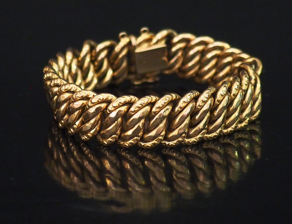 Lot de Bracelet articulé en or jaune, maille américaine. Long. 19 cm Poids. au prix de 800 à 900 € en vente aux enchères par l'hôtel des ventes Primardeco