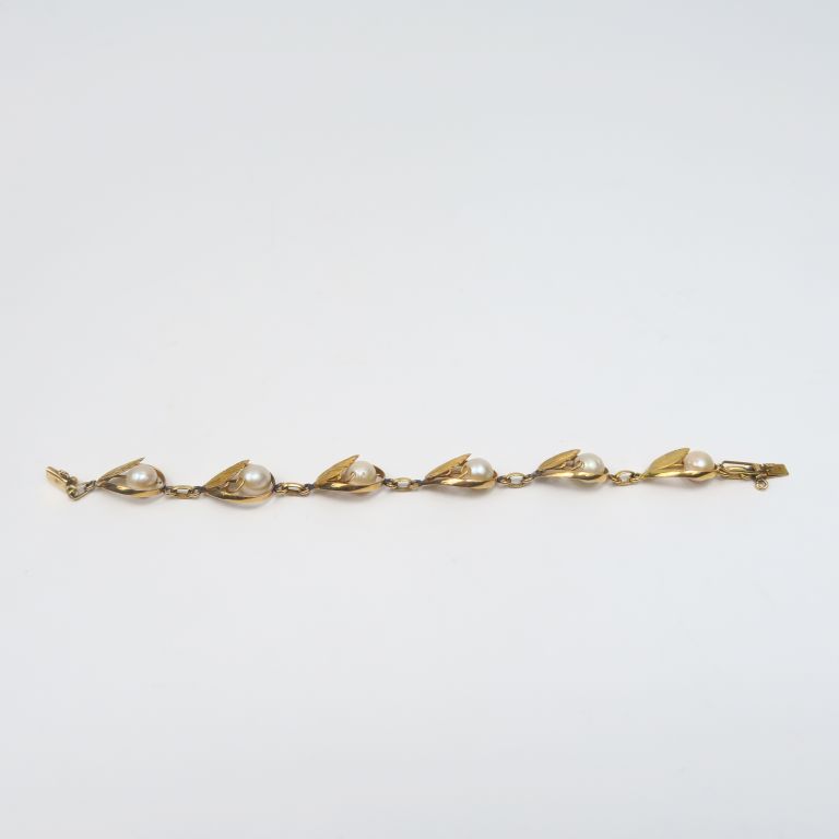 Bracelet de style Art Nouveau en or jaune et perles. Poids tel. 11,60 g